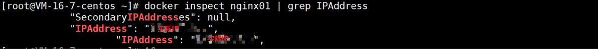 docker inspect nginx01 | grep IPAddress