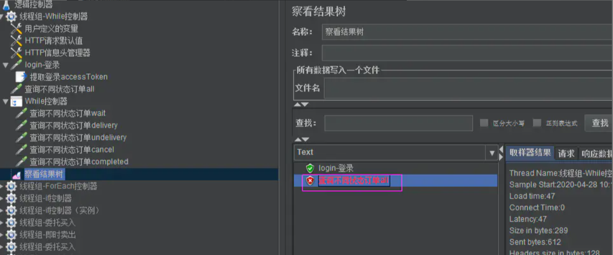修改上一个节点【查询不同状态订单all】请求失败,再执行,While 控制器里面的不会再请求